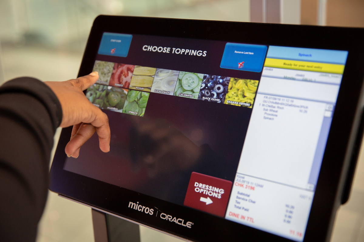 A customer picking toppings on the Corner Café kiosk. Photo by Meredith Forrest Kulwicki.