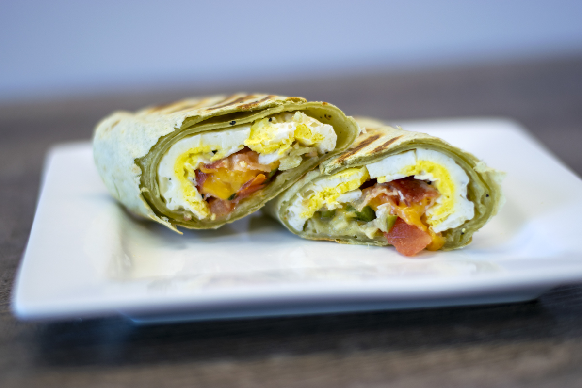 The Tex-Mex breakfast wrap, a signature breakfast sandwich only at Corner Café.