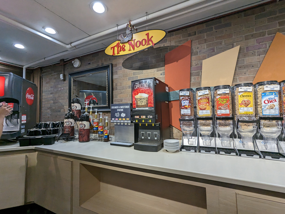 The Nook station at Governors Dining Center, which has plentiful beverage options and cereals.