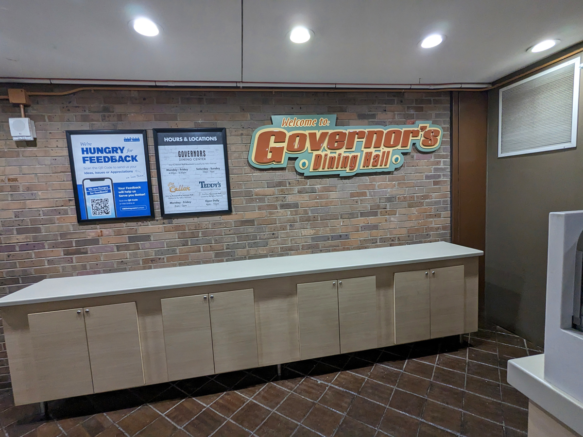One of the entrances to Governors Dining Center, next to the card swipe station.
