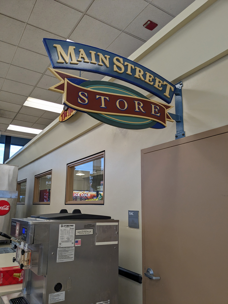 The Main Street Store sign located within Main Street Market / Goodyear Dining Center next to the registers.