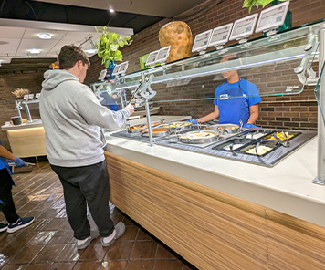 Students from Dewey, Roosevelt, Clinton, and Lehman Halls will find something for every appetite. Our all-you-care-to-eat dinner choices range from selections in the Comfort Foods section to our International Station. Favorites such as pizza, pasta, hand-carved meats, signature salads, hot soups, and vegetarian/vegan meals round out the selections. Of course, we can't forget to tell you about the desserts — there's a wide variety of cupcakes, cookies, pastries, pies… even soft-serve ice cream!