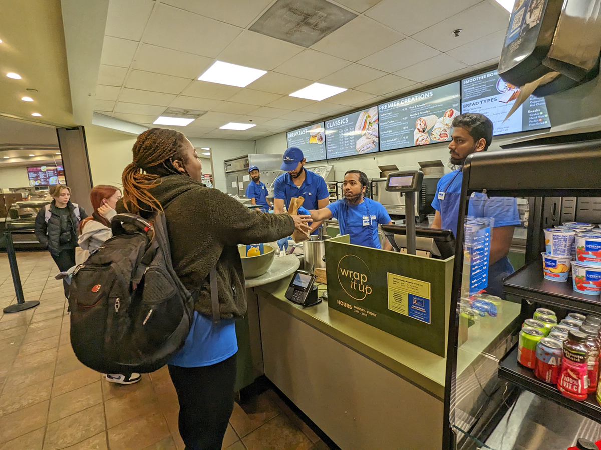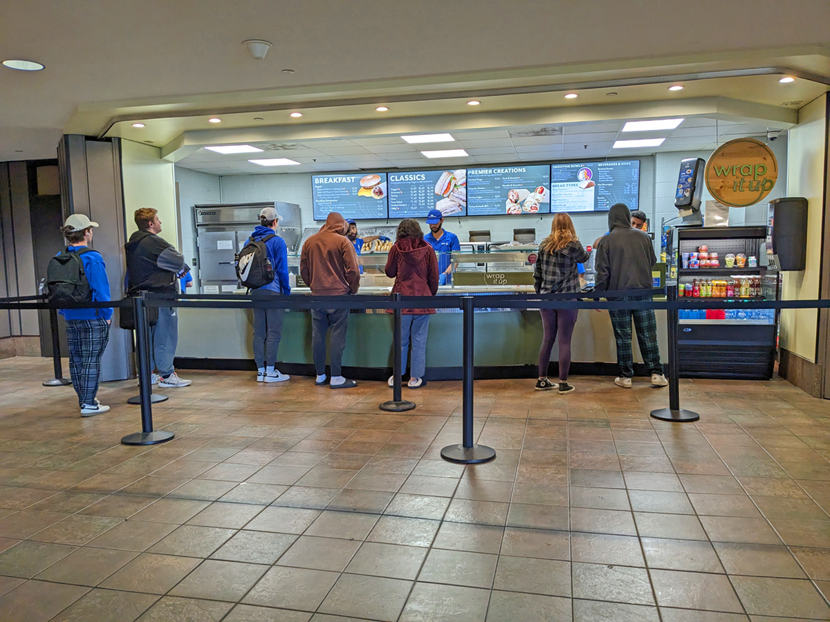 Students lining up at Wrap it Up in Ellicott Food Court.